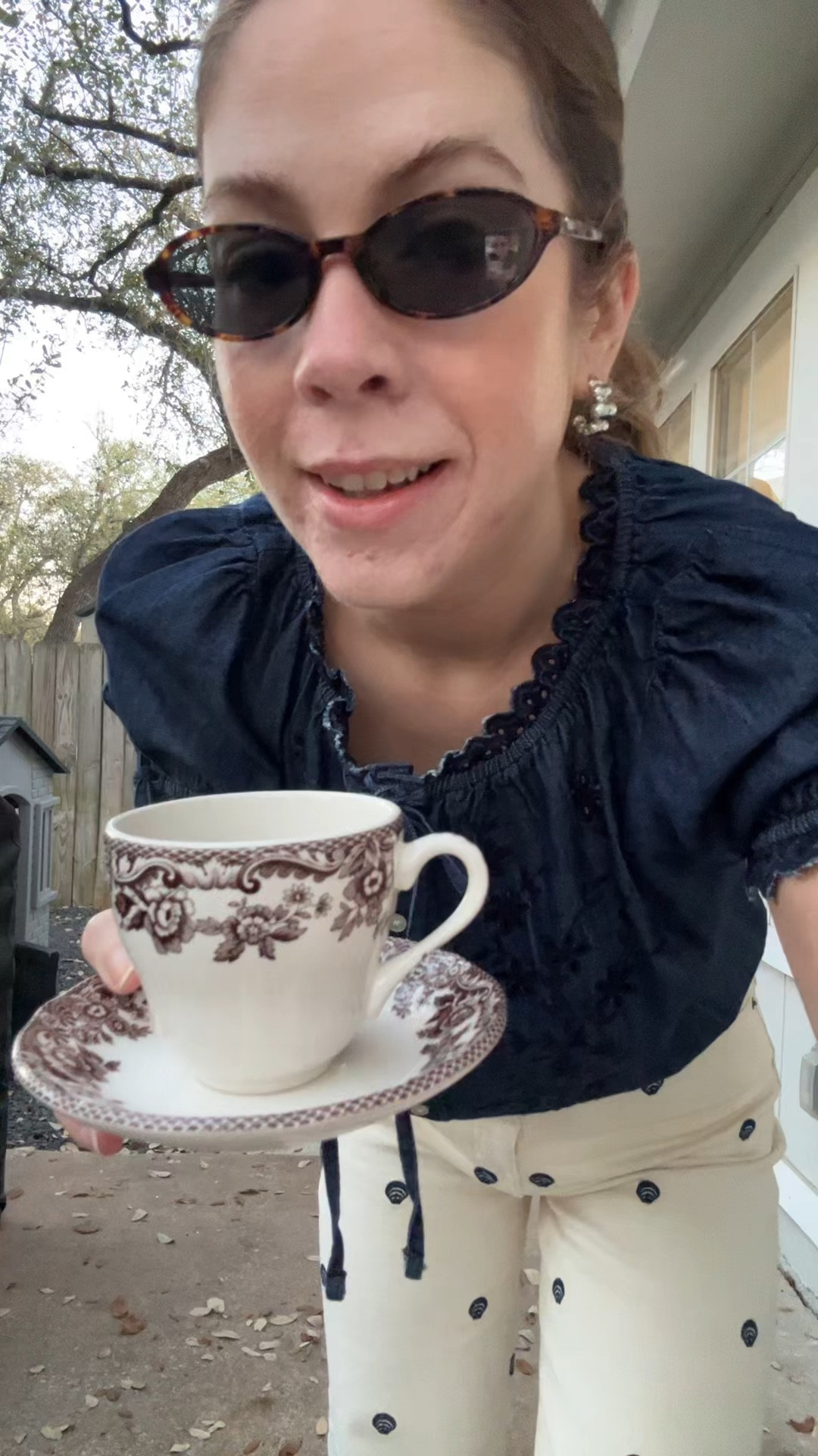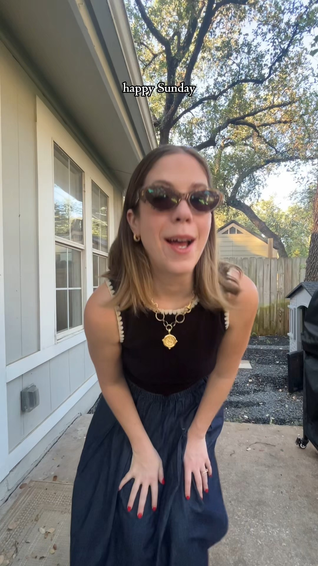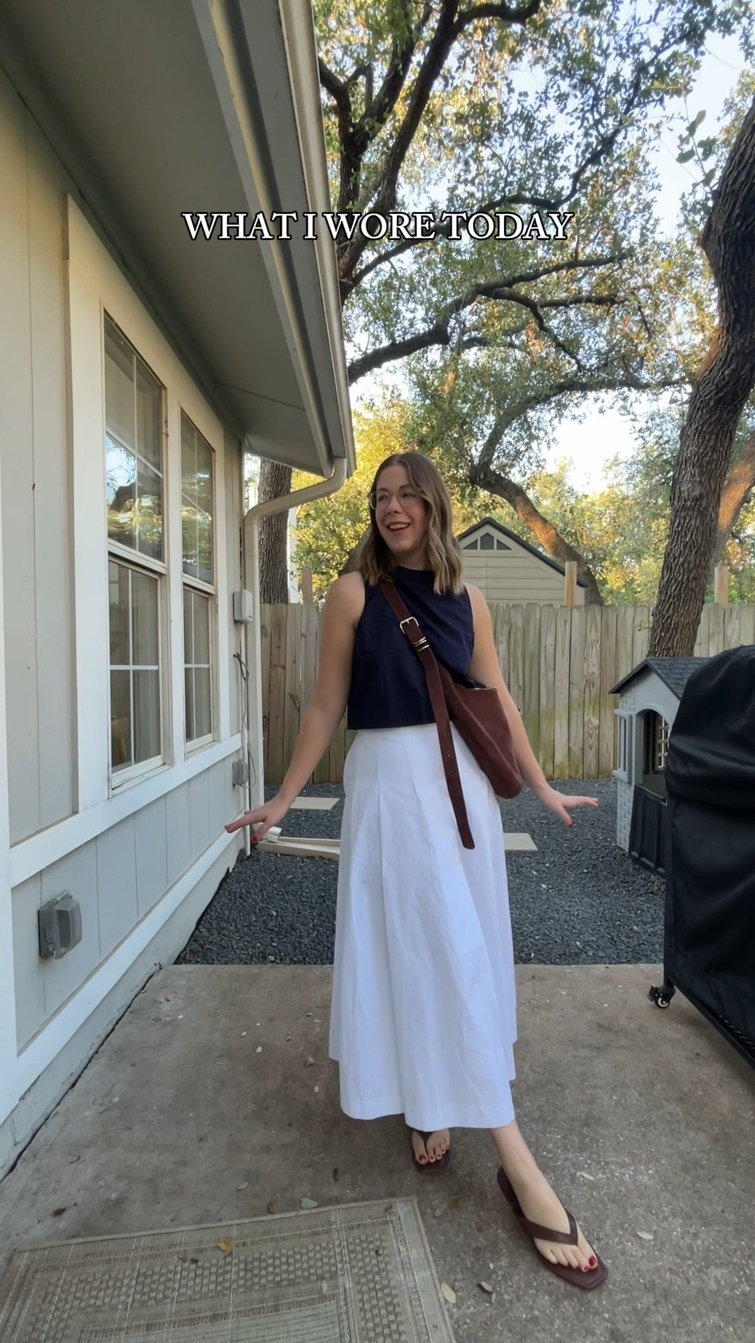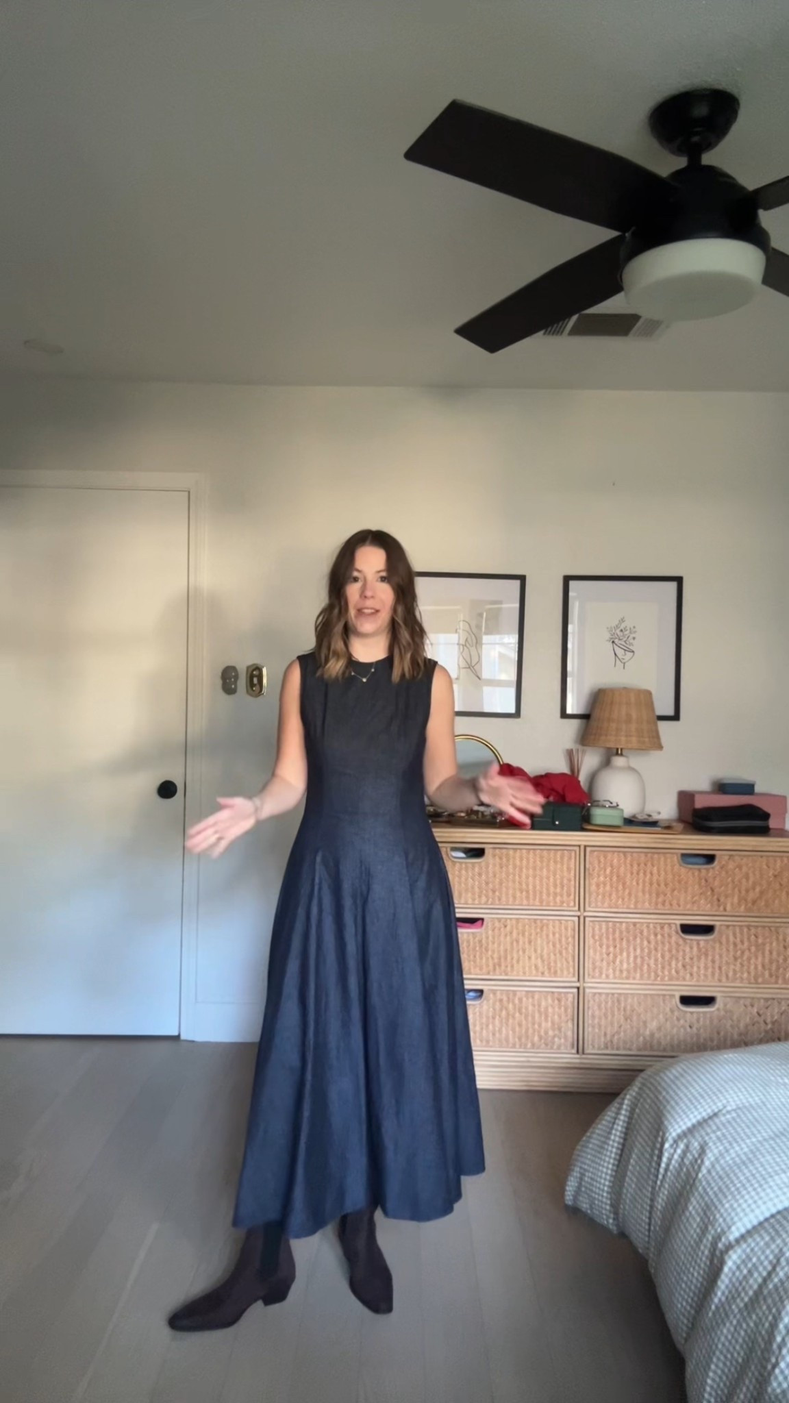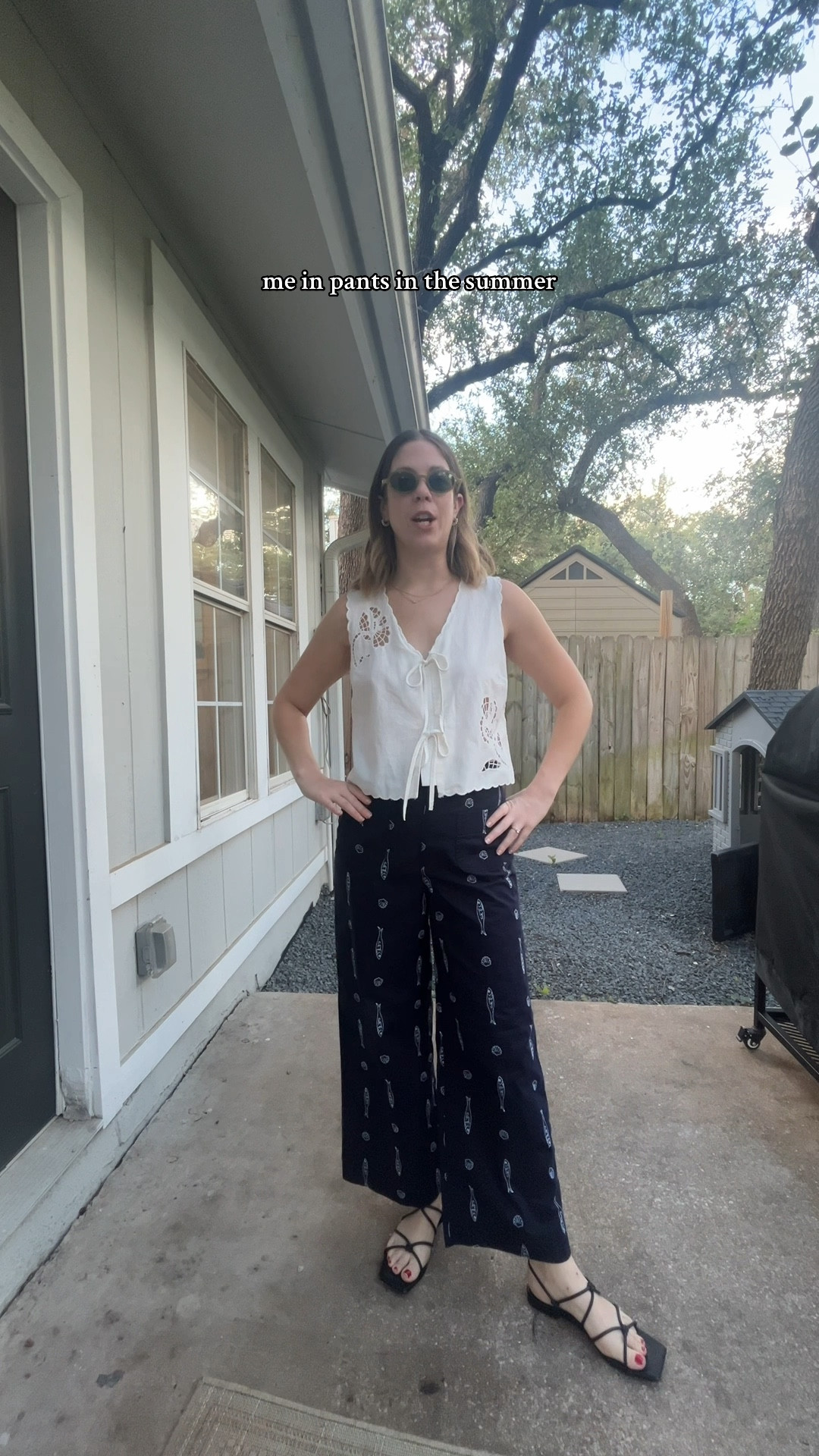 The perfect navy jumpsuit for running after a toddler all day.