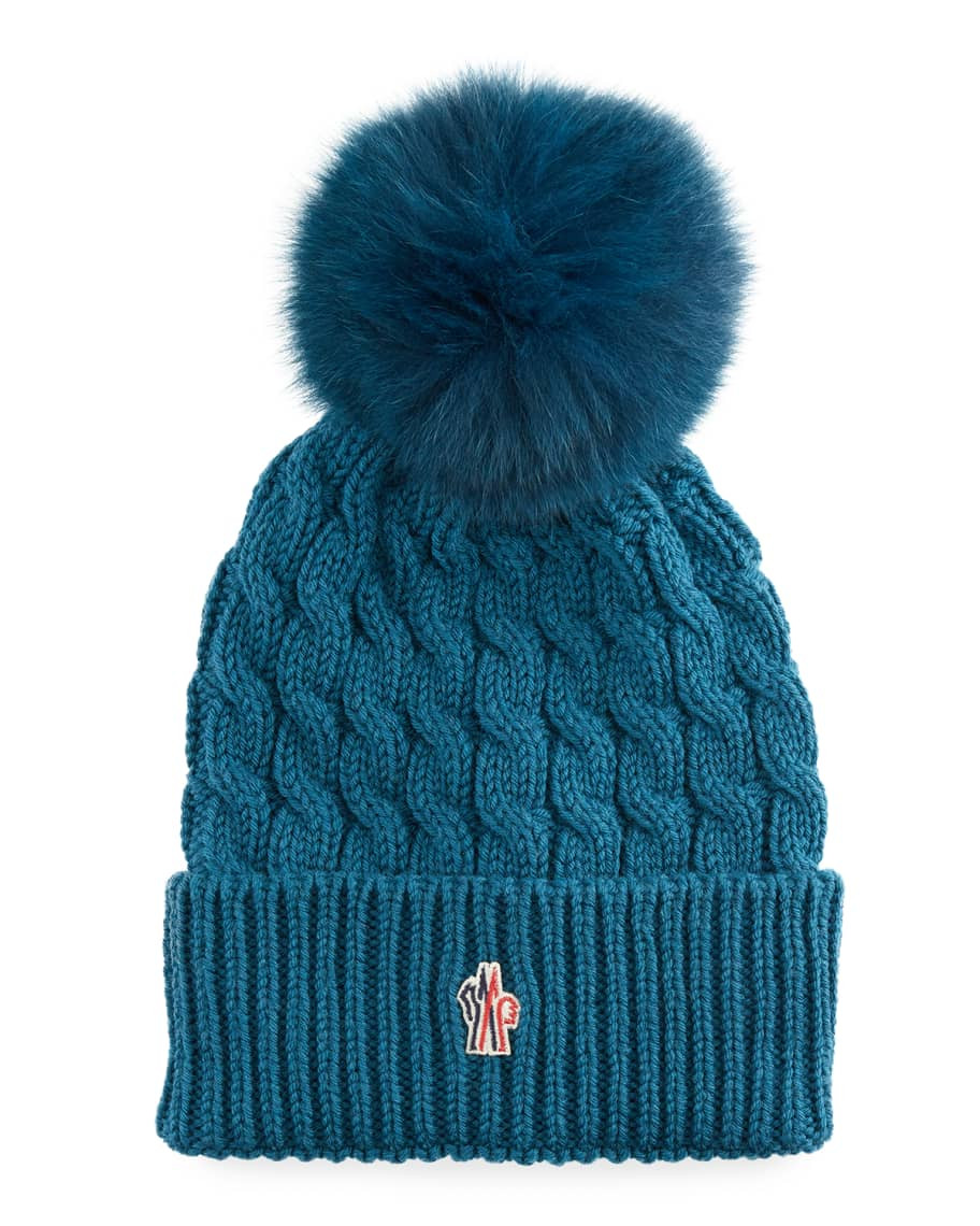 Moncler Wool Cable-Knit Fur Pom Beanie