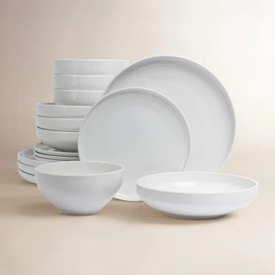 over&back Coupe 16-Piece Glossy White Hand-Finished Porcelain Dinnerware Set