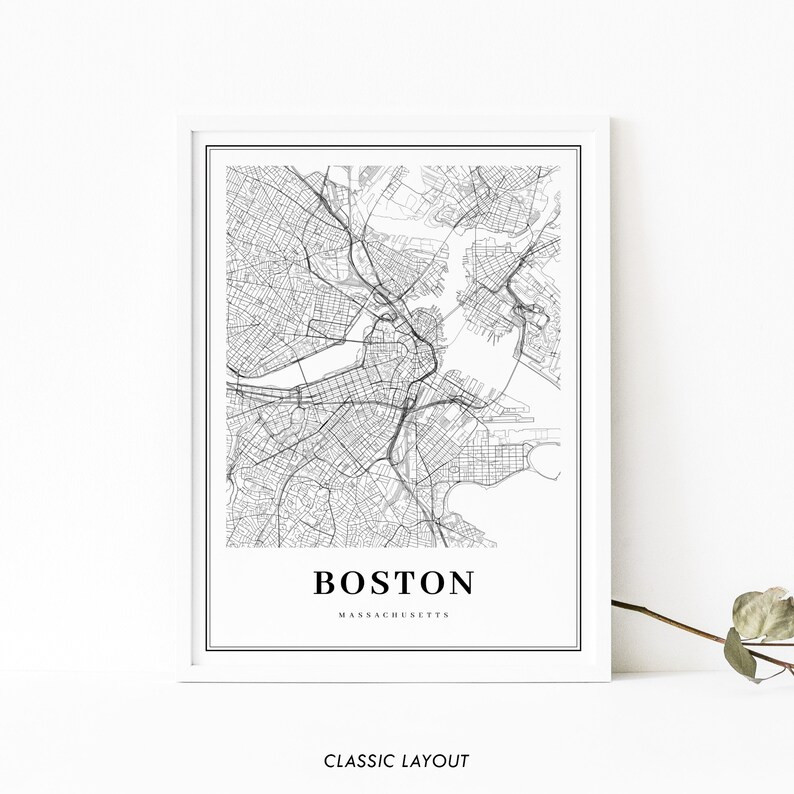 Downtown Boston MA Map Print, Massachusetts USA Map Art Poster, City Street Road Map Print, Nurse...