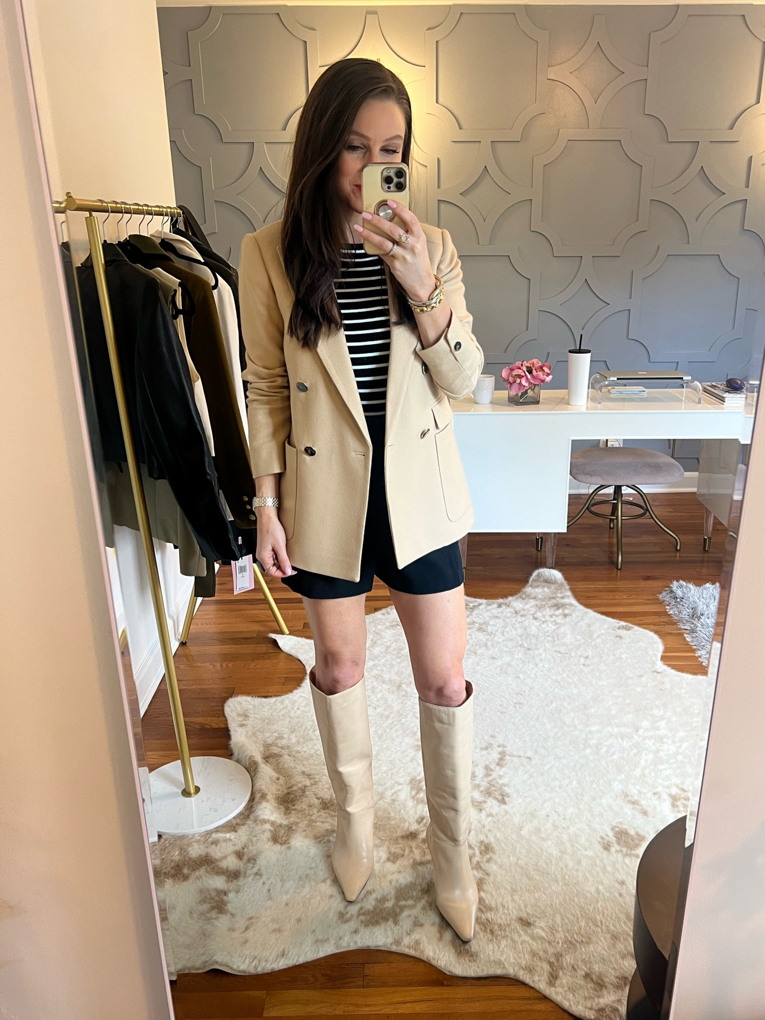 These shorts are amazingggg. True to size. As are the boots! Sized up a size. And the sweater is true to size!