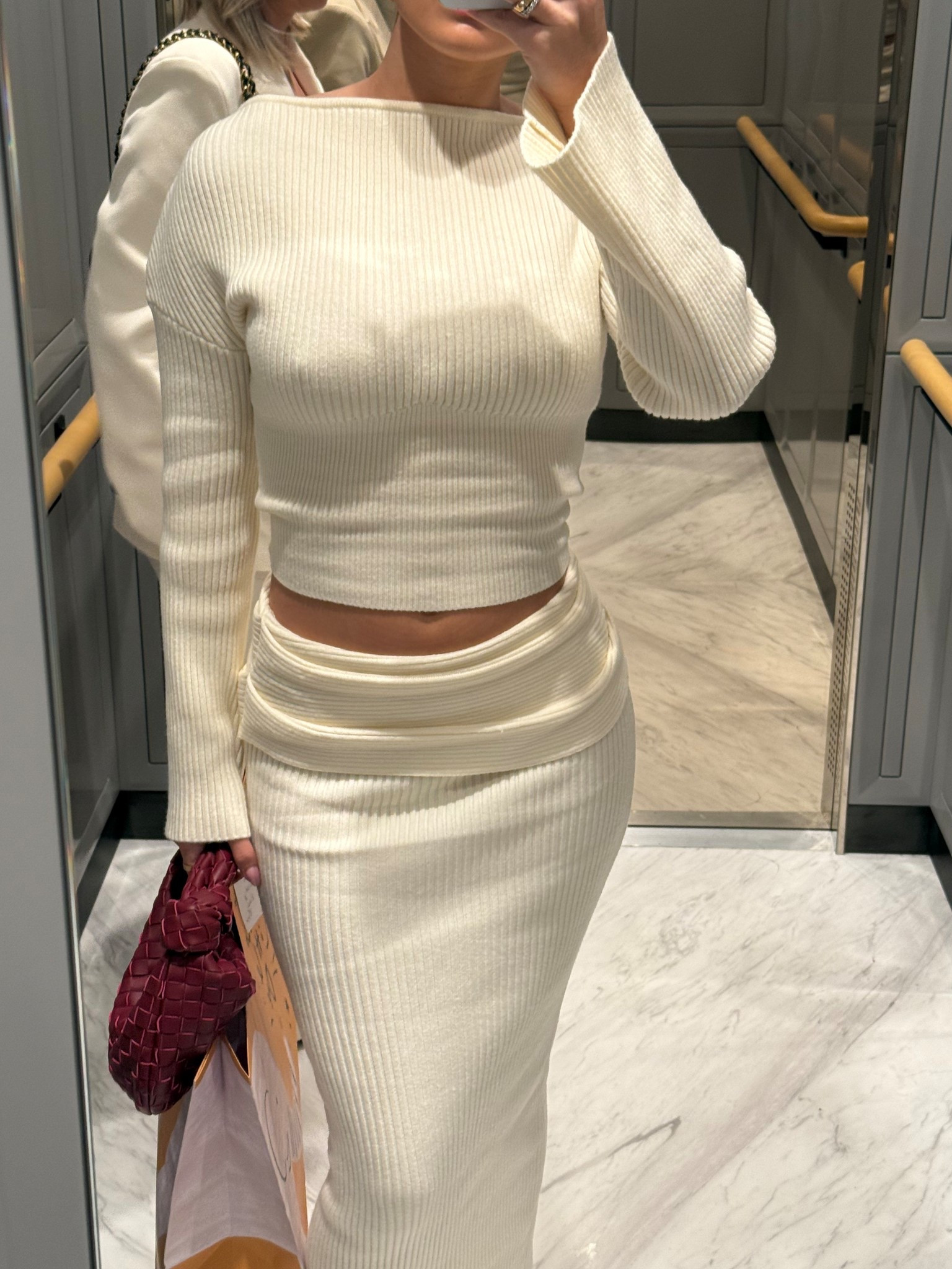 House of CB corset | White fox skirt | Bottega bag | The Frankie Shop blazer