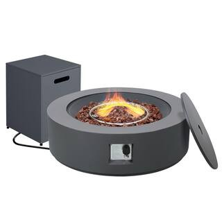 UPHA 42 in. 50,000 BTU Dark Gray Round Iron Outdoor Propane Gas Fire Pit Table with Propane Tank ...