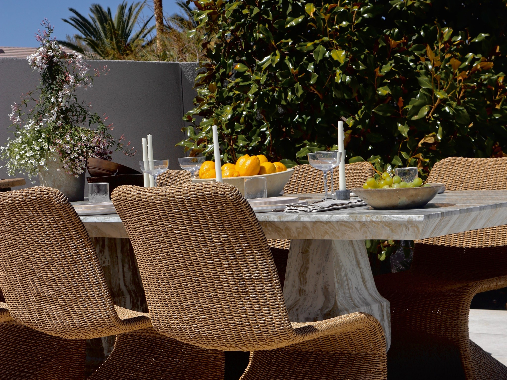 #ad my outdoor rug, bench, shed terracotta planter, and marble side table are all from @Wayfair