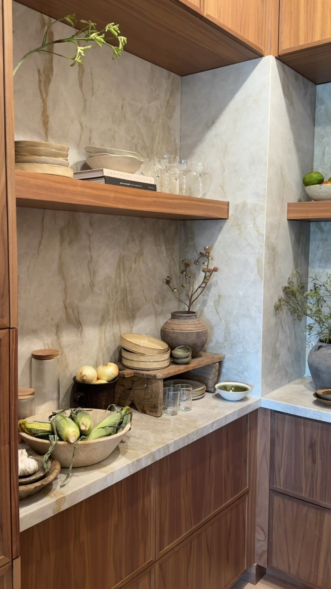 finishing up styling this corner  wall cabinet 🔗 @magnolia