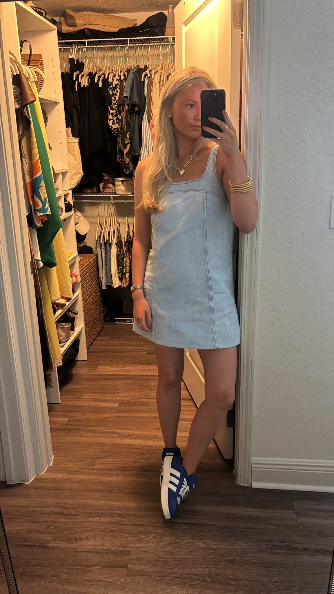 love this denim look with the boots!