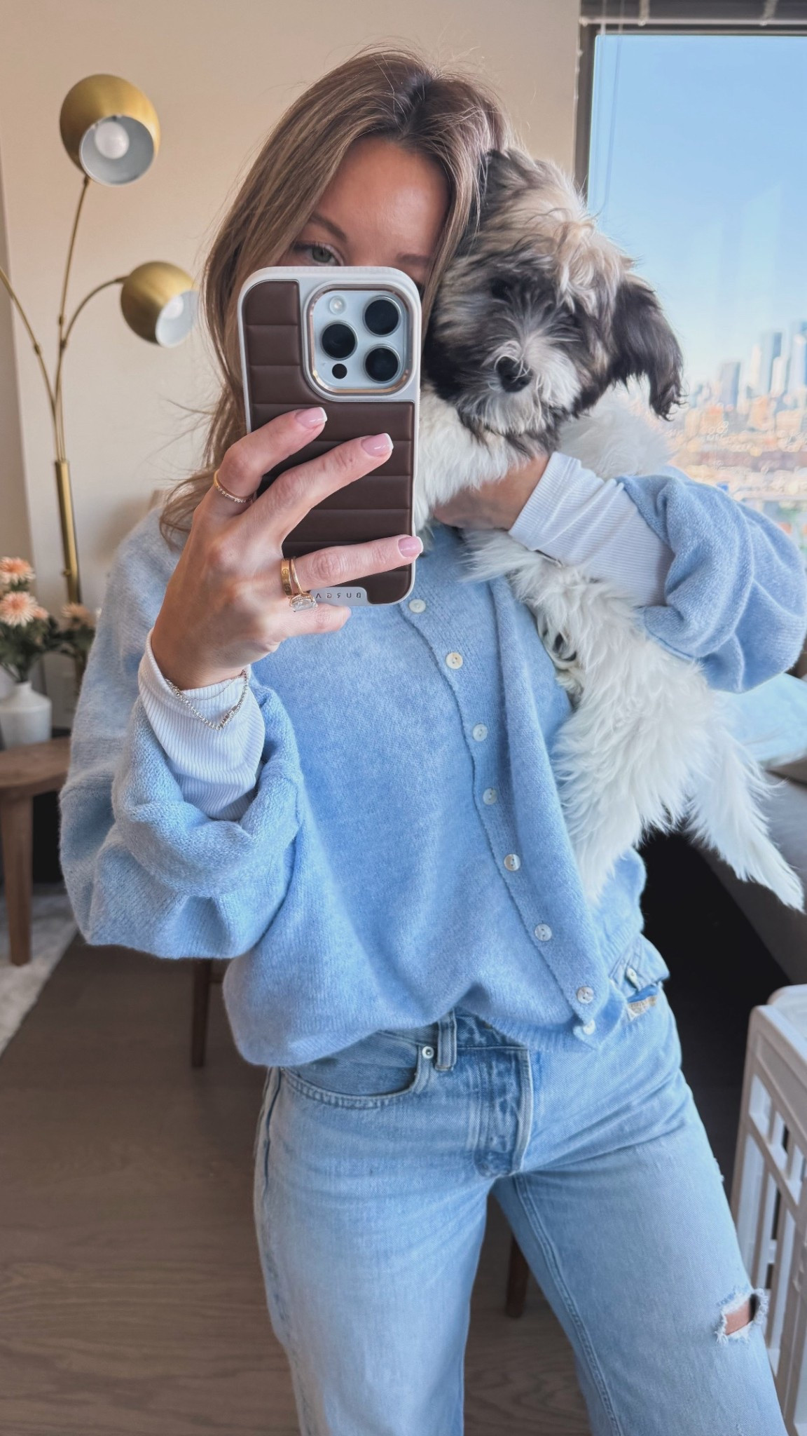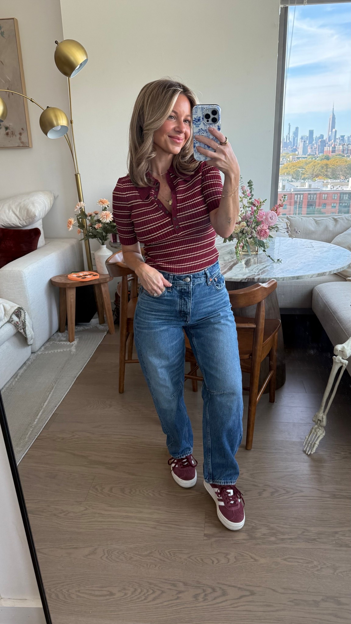 Wearing 00 blazer and 23 in jeans