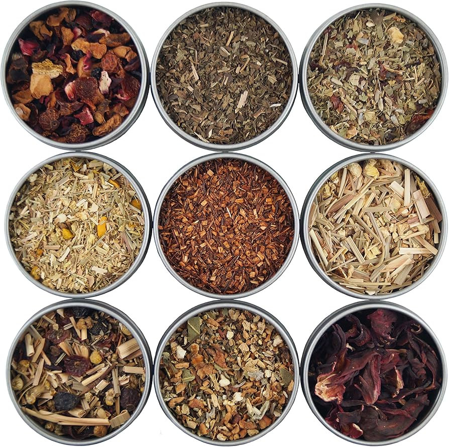 Heavenly Tea Leaves Organic Loose Leaf Herbal Tea Sampler, 9 Naturally Caffeine-Free Tisanes (App...