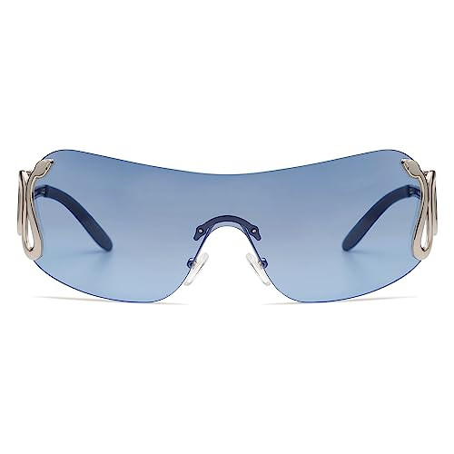 Appassal Rimless Y2k Sunglasses for Women Men Trendy Oversized Wrap Around Snake Shades AP3652,Blue