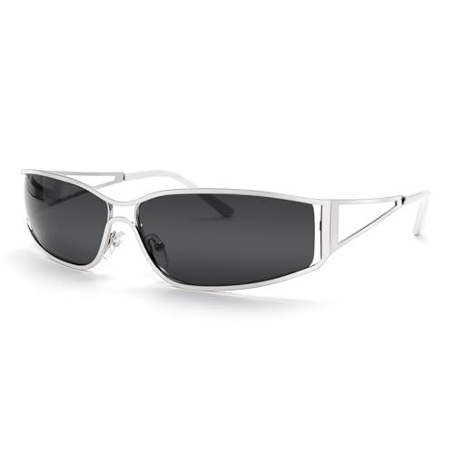 SORVINO Y2K Futuristic Sunglasses for Women Trendy 2000S Wrap Around Glasses Clear Metal Shades