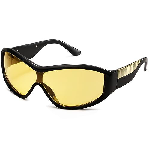 SOJOS Trendy Oversized Wrap Around Sunglasses for Women Men Fashion Y2K Sunnies SJ2248, Black/Yellow