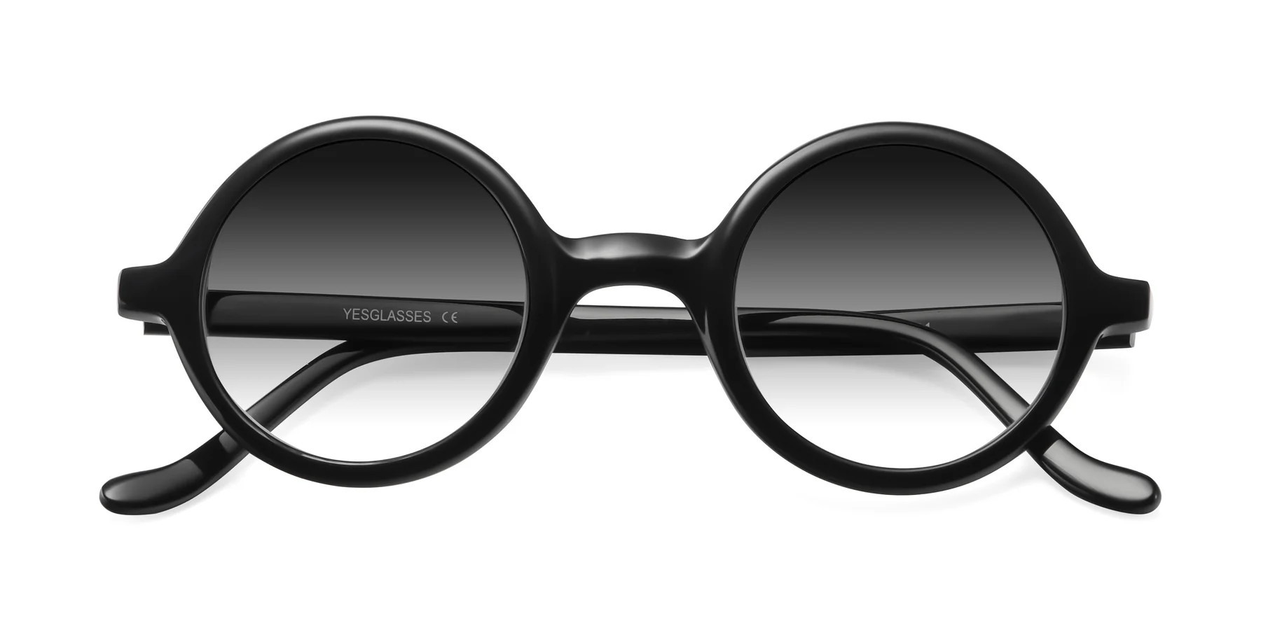 Black Narrow Retro-Vintage Round Gradient Sunglasses with Gray Sunwear Lenses