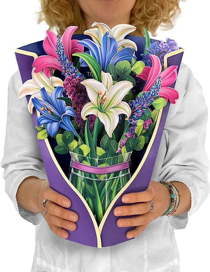 Freshcut Paper Pop Up Cards, Lillies & Lupines, 12 inch Life Sized Forever Flower Bouquet 3D Popu...