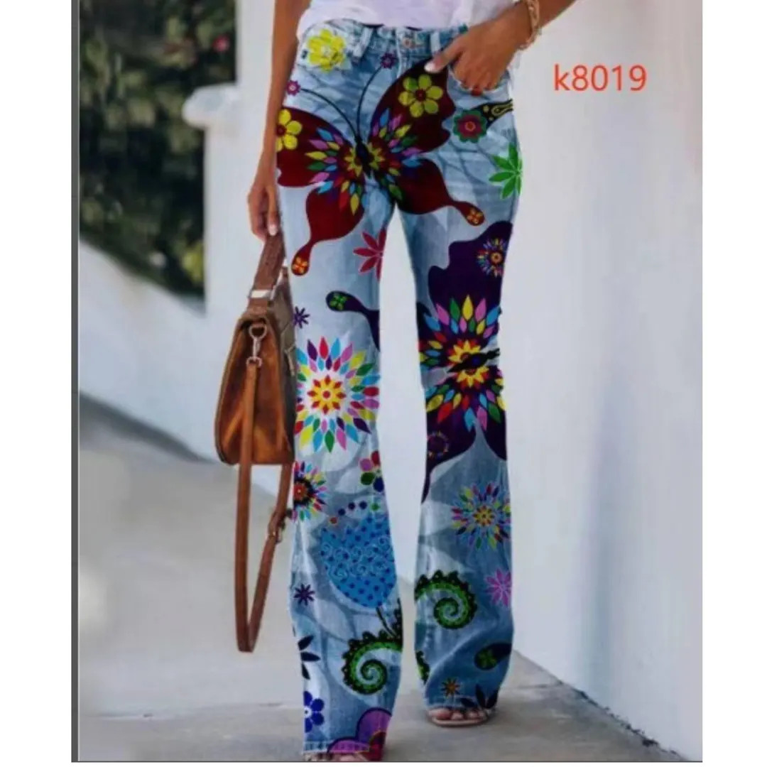 Boho Floral Bell Bottom Jeans: Retro High Waist Flared Denim - Etsy