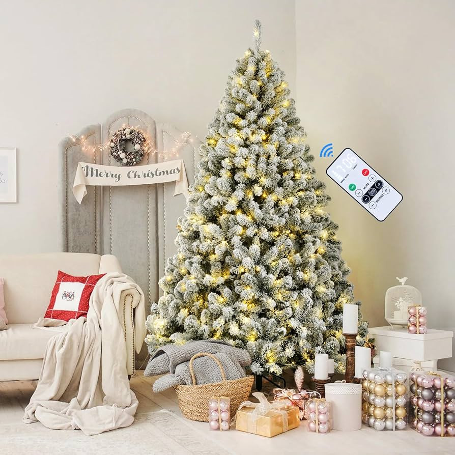 SHareconn 7.5ft Prelit Snow Flocked Artificial Holiday Christmas Tree with Remote, 470 Warm White...