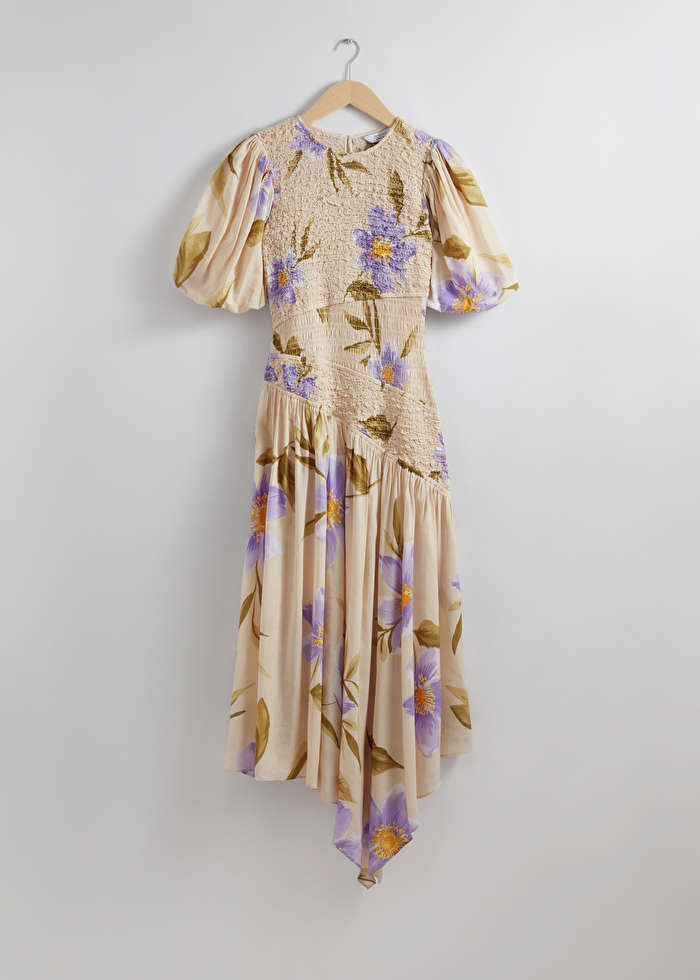 Asymmetrisches Midikleid mit Smokdetails