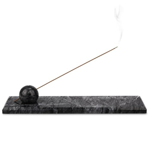 HESHIBI Marble Incense Holder Tray Incense Burner Modern Minimalist Home Deco and Desk Incense Holder for Sticks (Grey Black)