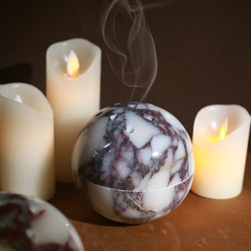 100% Natural Travertine Spherical Incense Burner, Manual Incense Burner Holder, Ideal for Smudging, Incense Burning, Ritual Purpose, Decoration Etc.