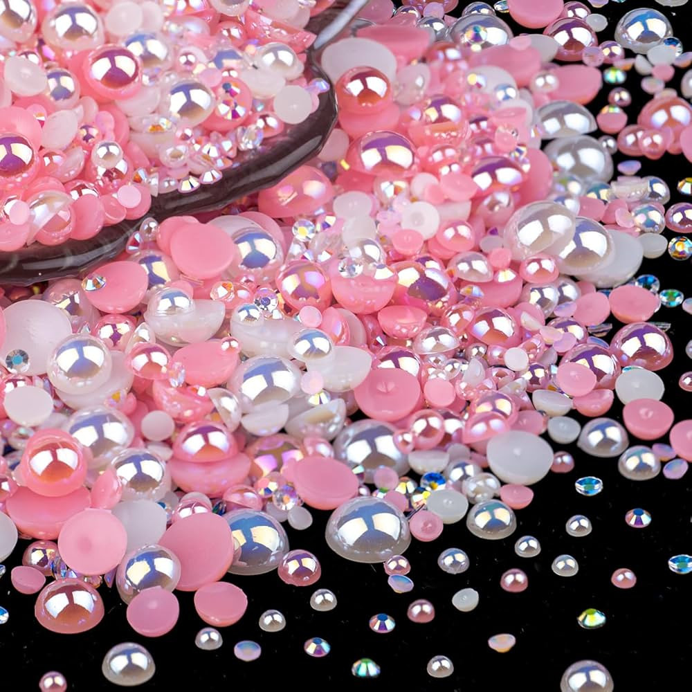 80g Mix Flatback Pearls and Rhinestones for Crafts Pink Purple Mixed Size 2mm-10mm Half Round Pea...