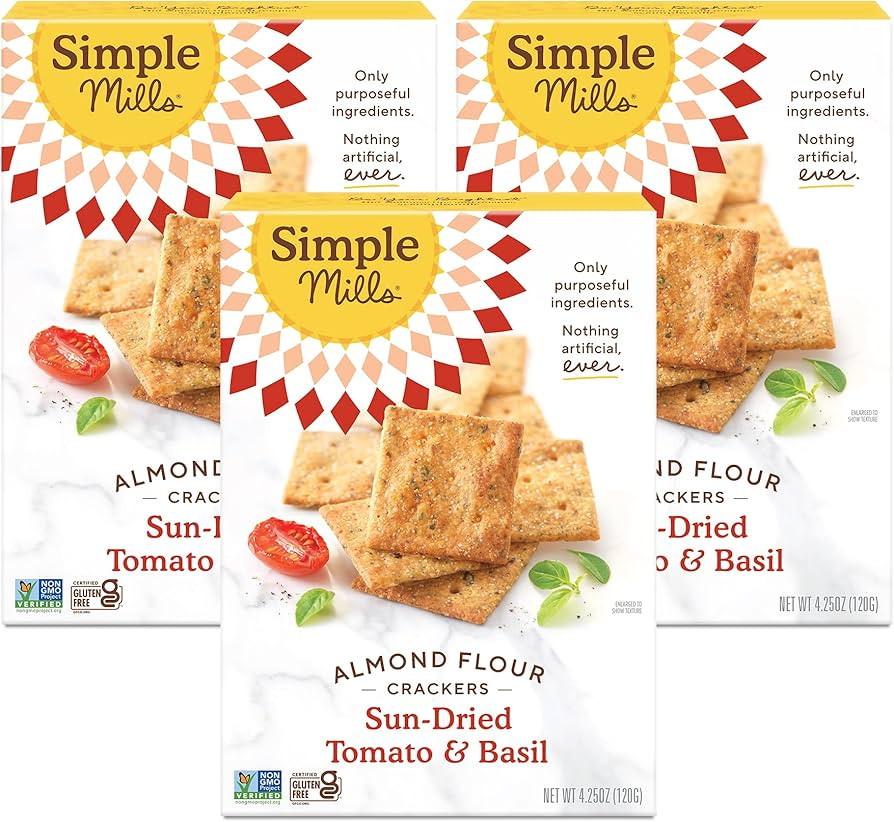 Simple Mills Almond Flour Crackers, Sundried Tomato & Basil - Gluten Free, Vegan, Healthy Snacks,...