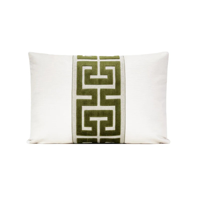 Alabaster Velvet Pillow Cover With Olive Greek Key Trim 18x18, 20x20, 22x22, 24x24, Lumbar Pillow...