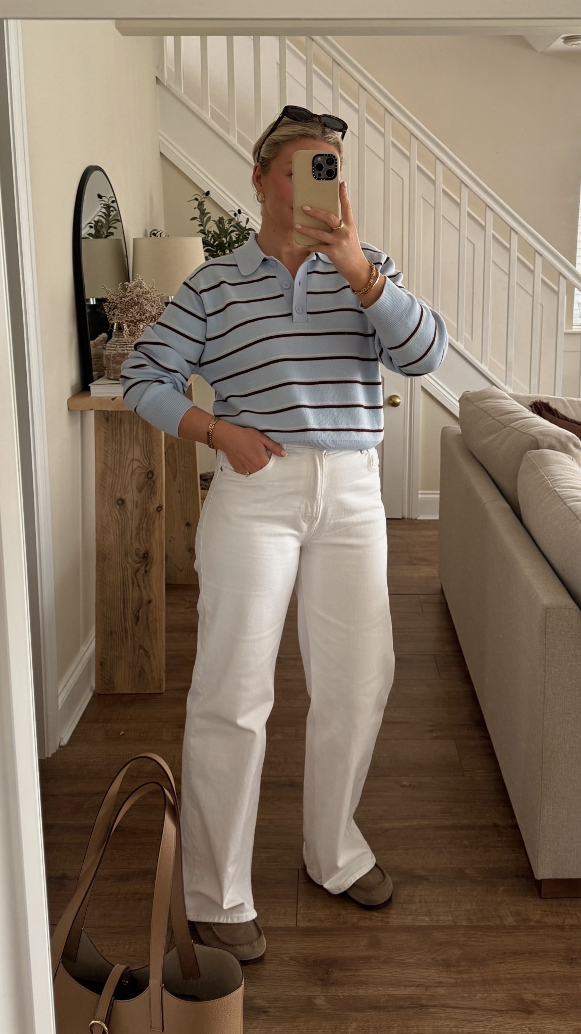 Spring Style, Spring Outfit, Summer Outfit, Spring Staples, Abercrombie Jeans, White Jeans, Denim Shirt