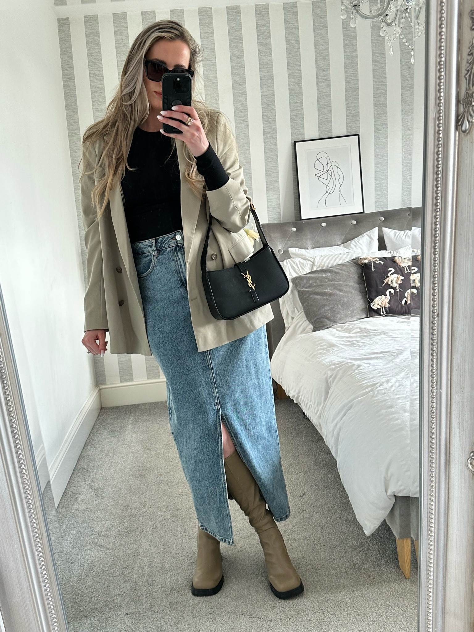 Maxi denim skirt outfit!