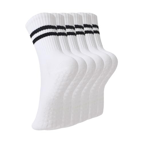 BONANGEL Pilates Socks with Grips for Women, 3 Pairs Womens Grippy Yoga Ballet Barre Hospital Gym Athletic Socks