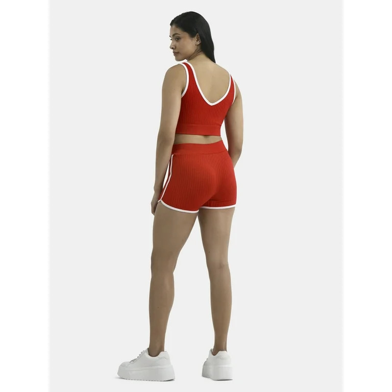 No Boundaries Seamless 2-Piece Cropped Tank Top and Dolphin Shorts with Contrast Binding, Women's
