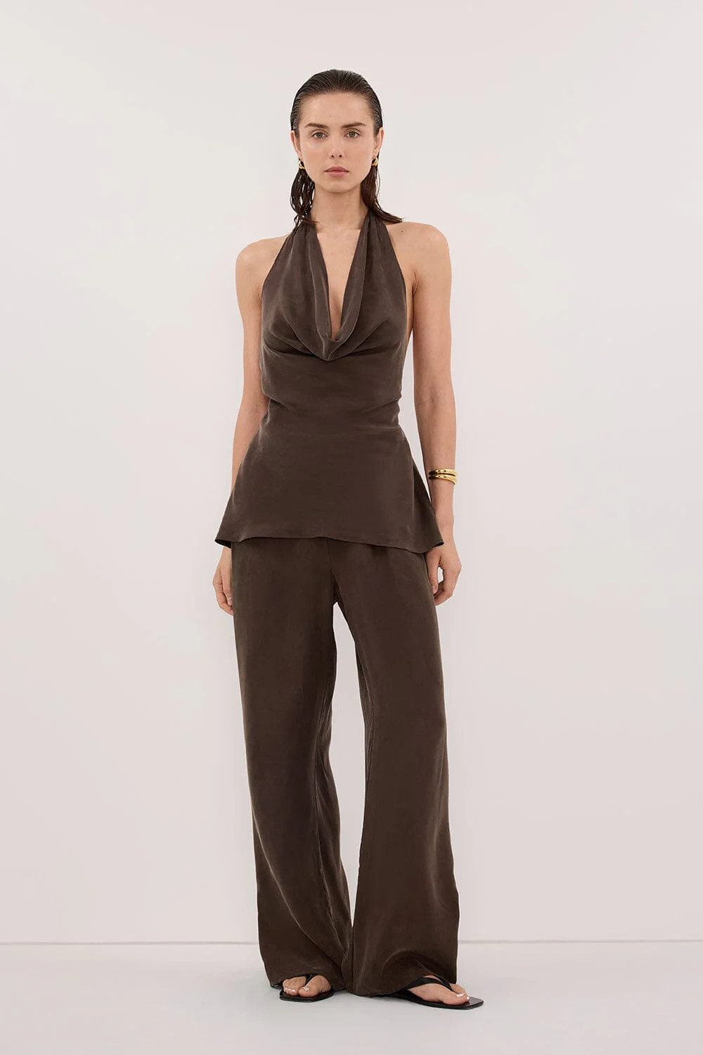 ADDIE BITTER CHOC CUPRO DRAWSTRING PANT