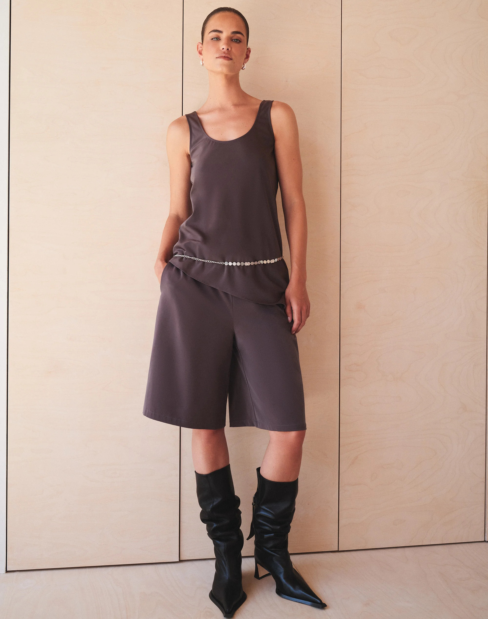 EDT. Satin Scoop Neck Top