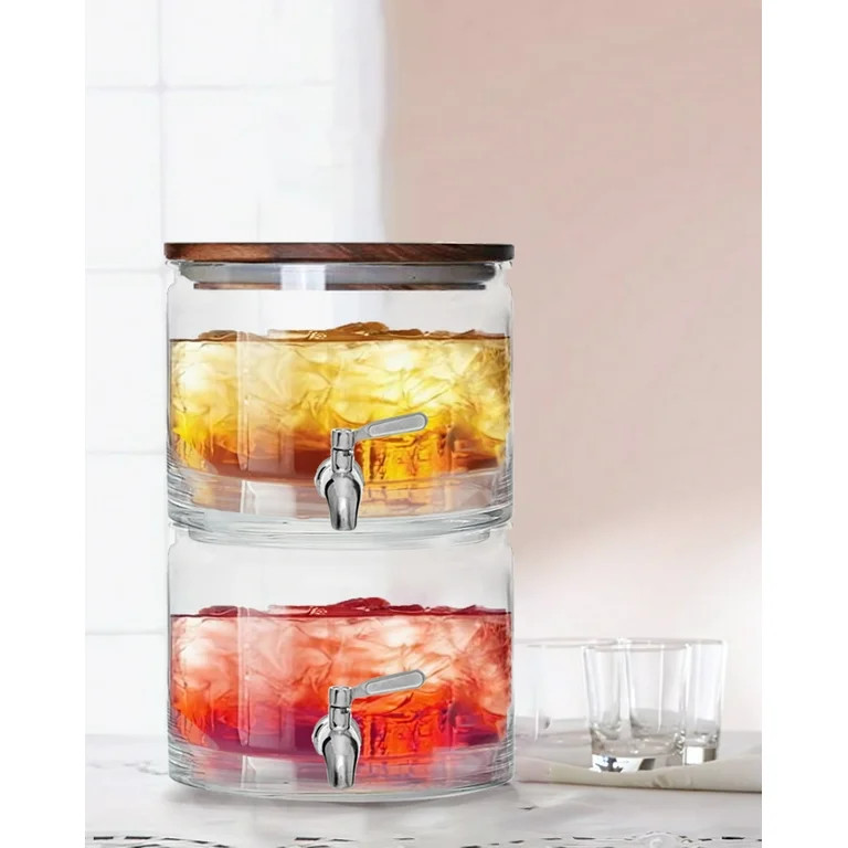 Better Homes & Gardens 240oz Stacking Glass Beverage Dispenser with Acacia Wood Lid