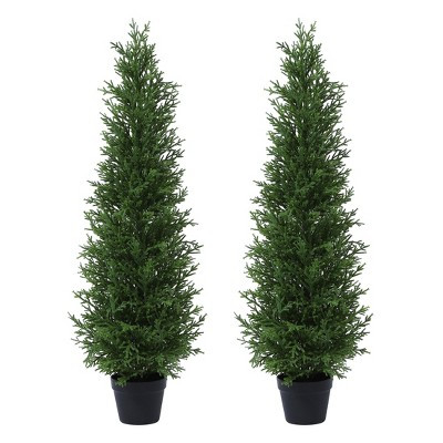 Artificial UV Resistant Cypress Topiary Trees for Outdoor, 4FT Faux Cypress Plant for Porch Decor Faux Pine Tree for Perfect Housewarming Gift