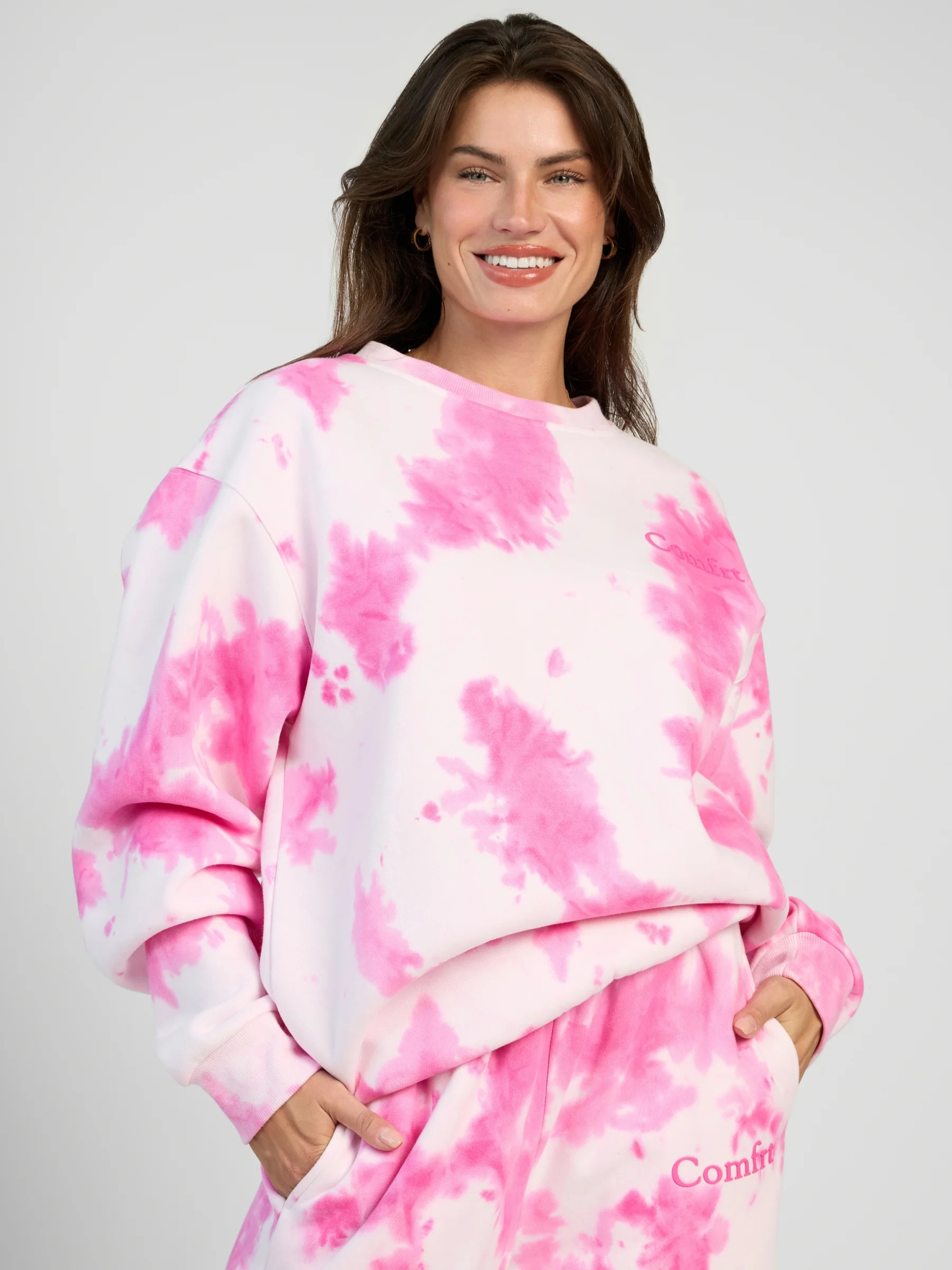Comfrt Minimalist Crew Sweatshirt | Strawberry Swirl | Pink | Oversized | L | Large