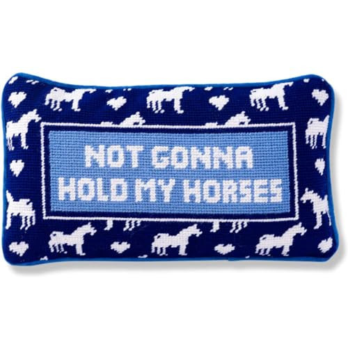 FURBISH Needlepoint Decorative Throw Pillow - Hold My Horses - 9" x 15" - Small Embroidered Accent Pillow for Bed, Chair, Couch, Sofa - Eclectic Home Decor