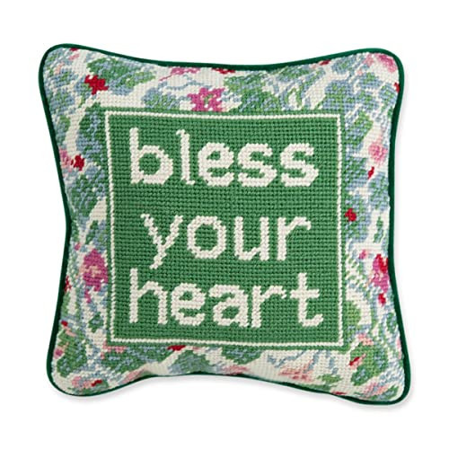FURBISH Needlepoint Decorative Throw Pillow - Bless Your Heart - 10" x 10" - Small Embroidered Accent Pillow for Bed, Chair, Couch, Sofa - Eclectic Home Decor