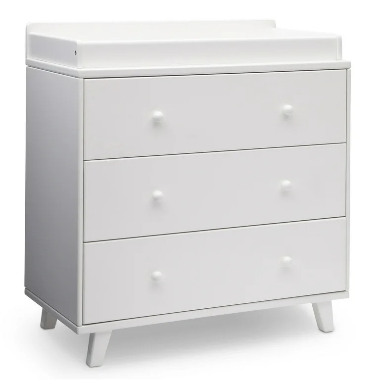 Ideas for blue & gray nursery. Delta crib. White changing table dresser and more