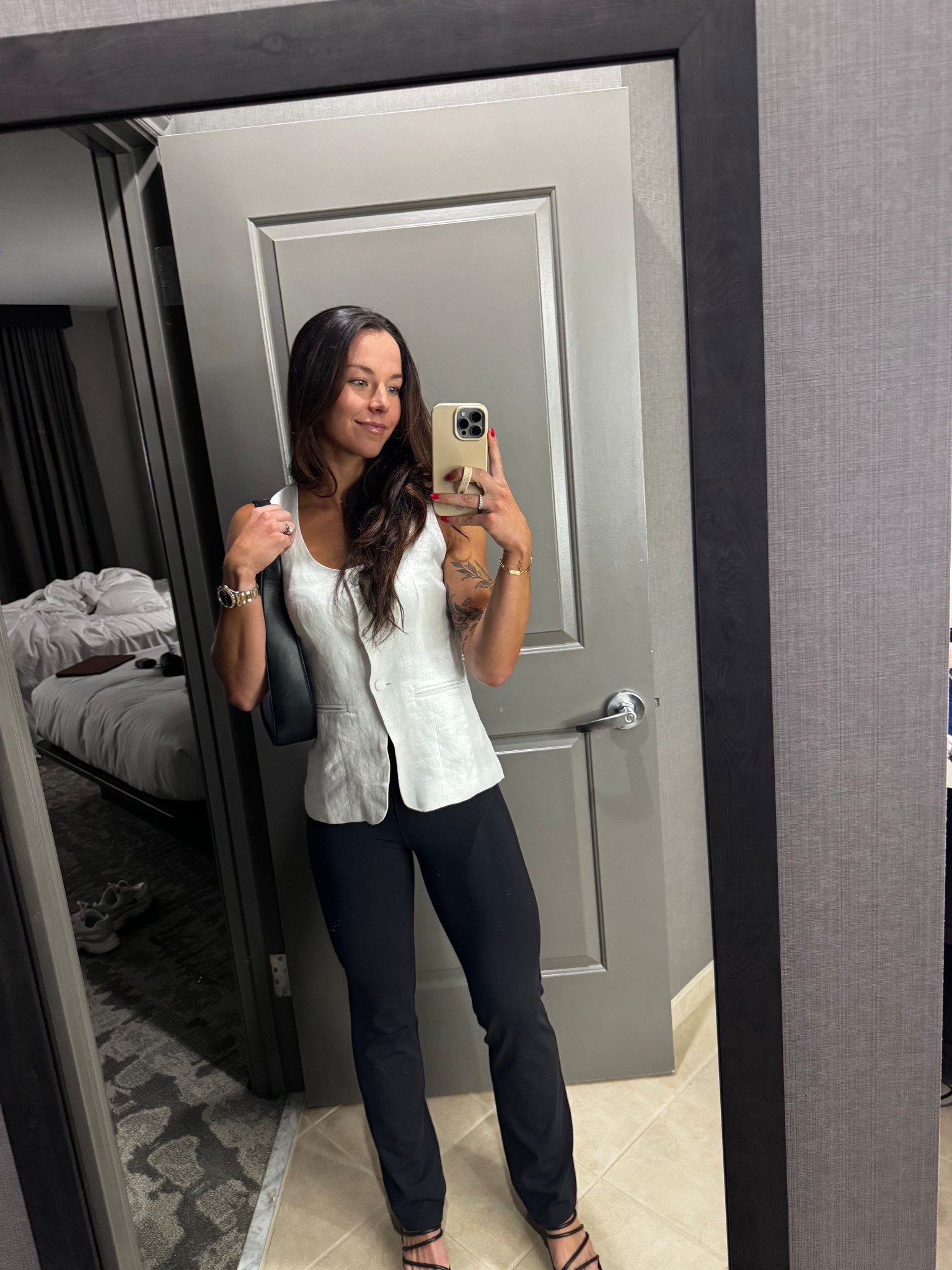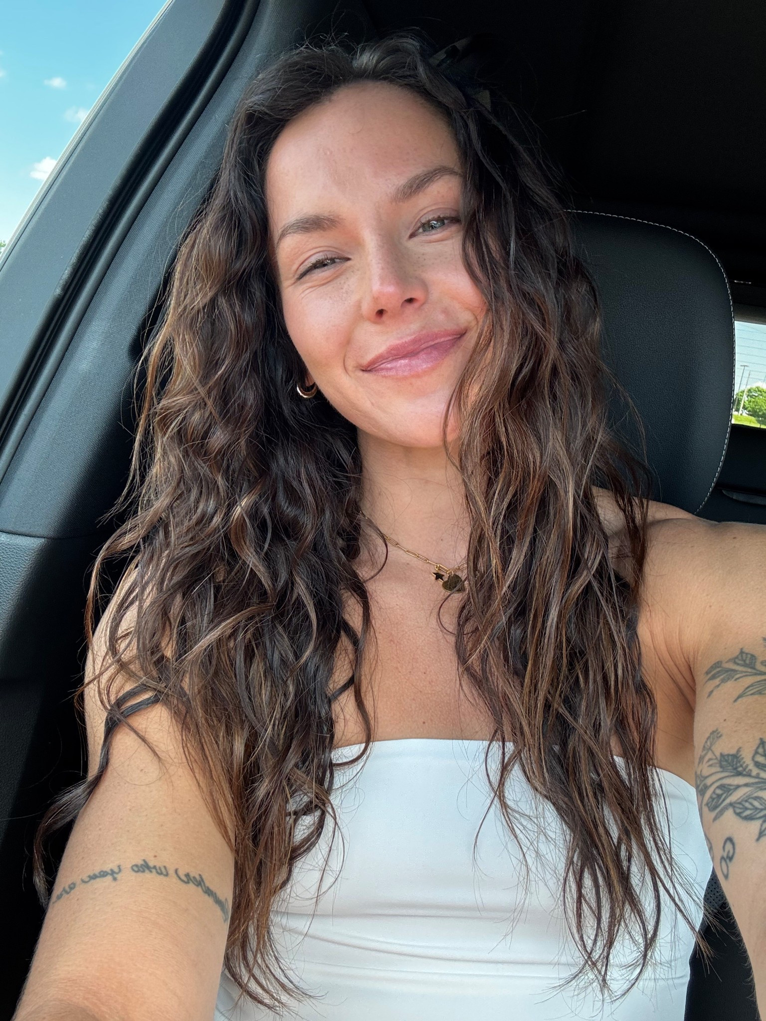 Wearing a large in top and mediums on bottom, but should’ve sized down in bottoms!