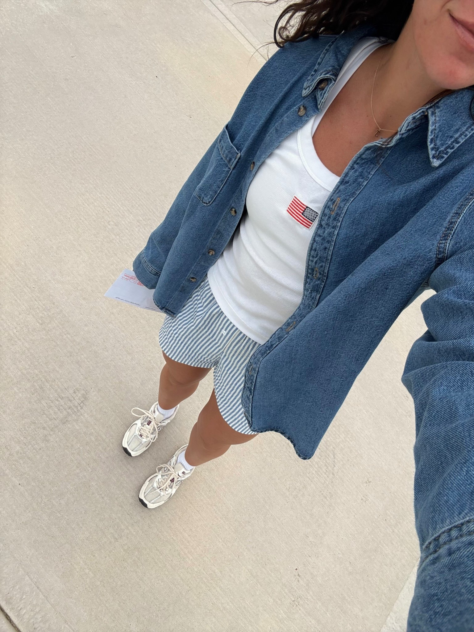 I size up a half size in the shoes & wear a medium in the shorts!
