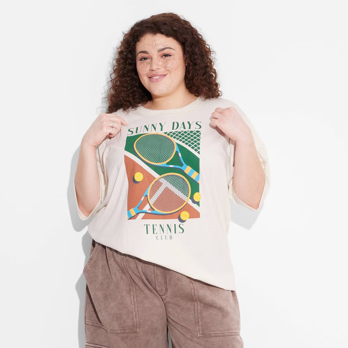 Women's Sunny Days Tennis Club Short Sleeve Graphic Boyfriend T-Shirt - Off-White