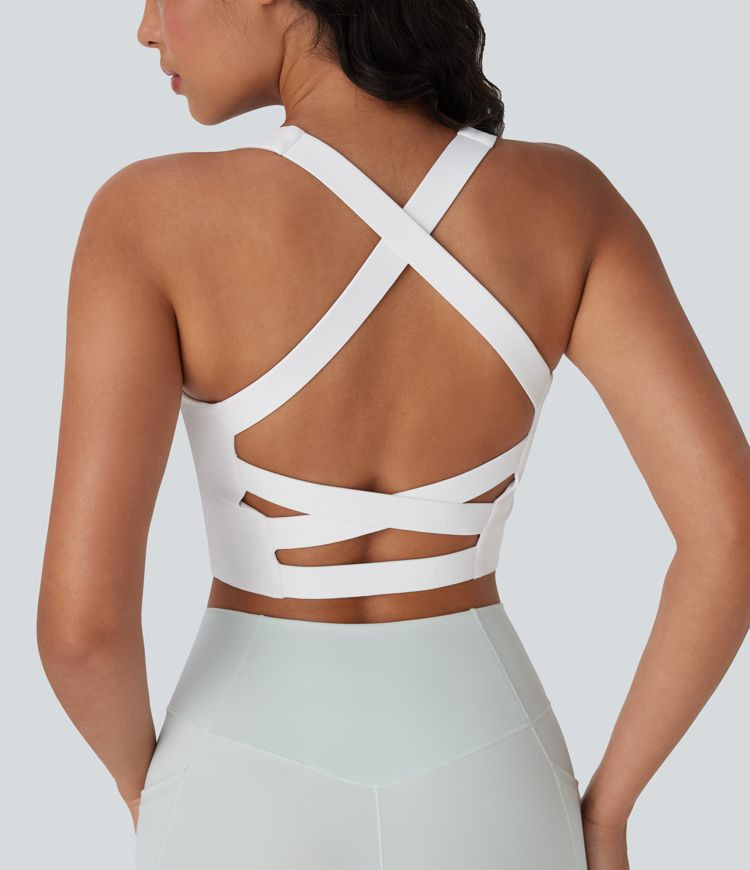 Cut Out Crossover Hem Solid Yoga Tank Top