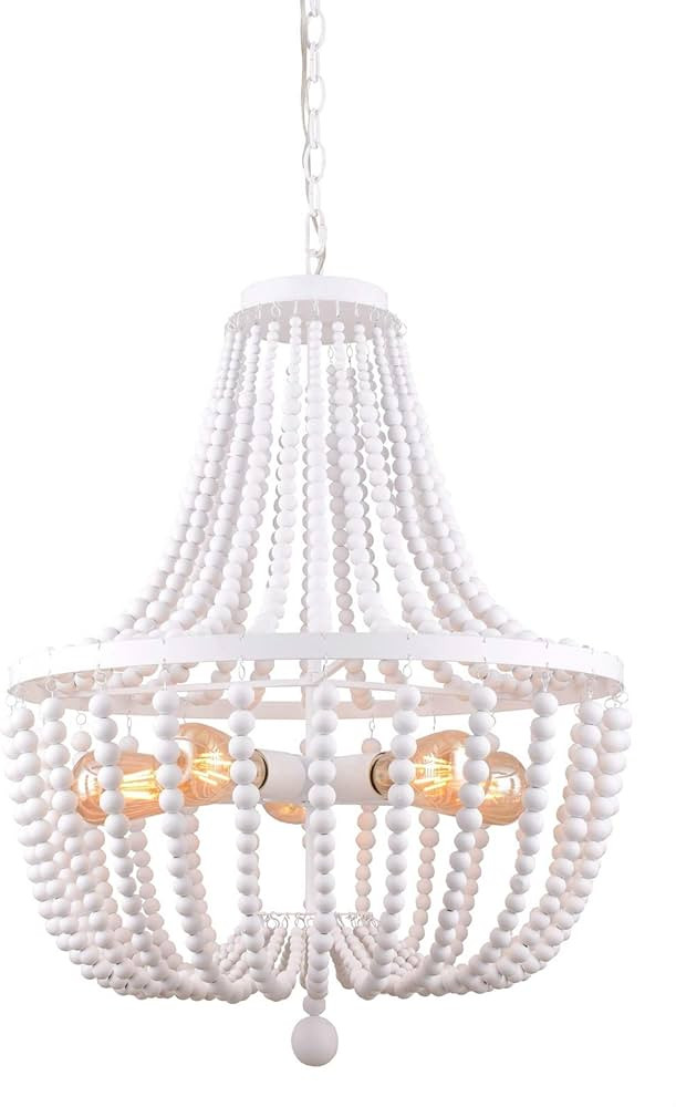 ALICE HOUSE 21" Wood Bead Chandeliers, Rustic White Finish, 5 Light Wood Beaded Pendant Light for...