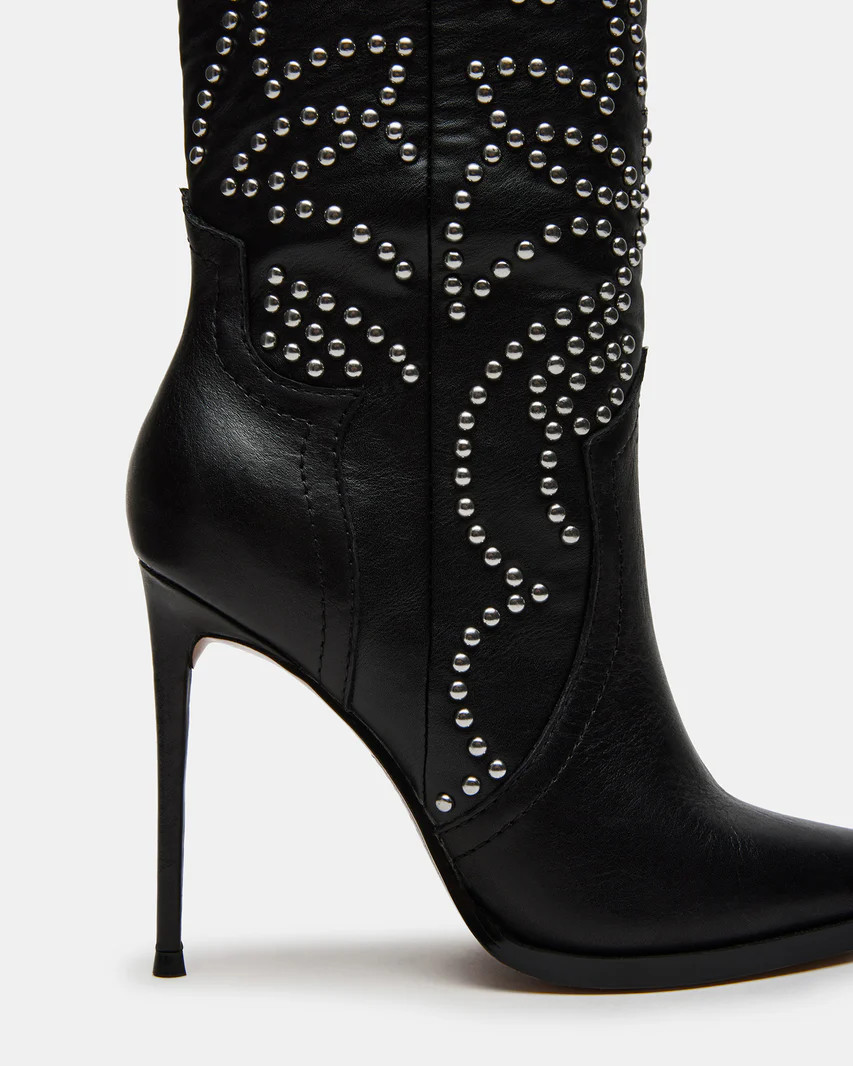 TYRANT Black Leather Studs Western Stiletto Boot | Women's Boots