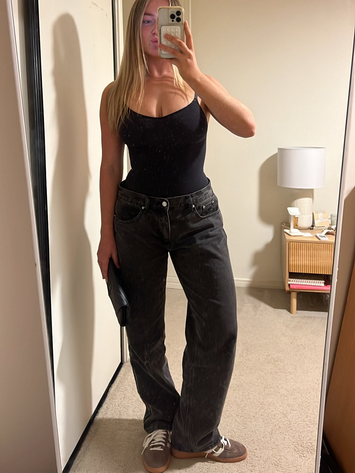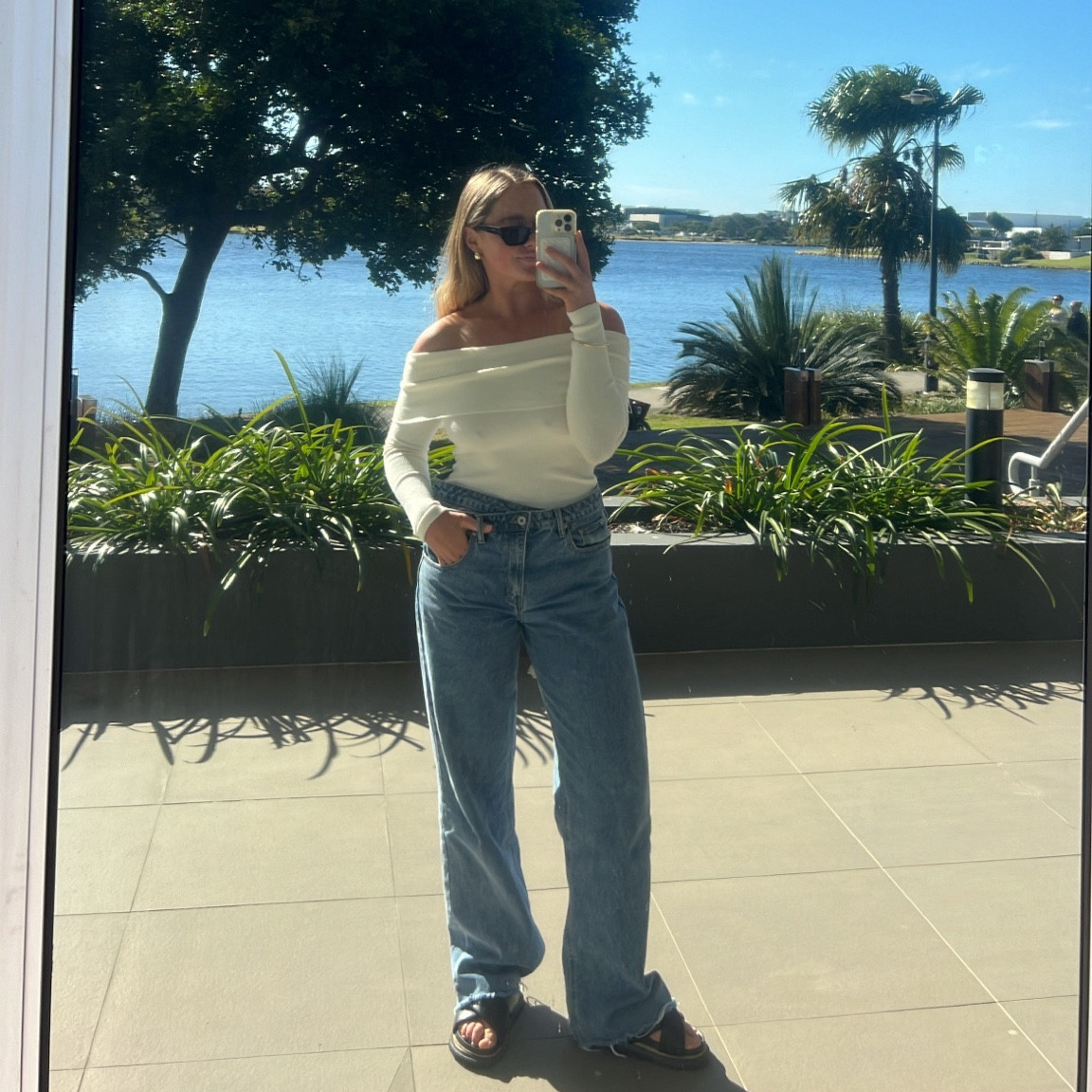 Jeans are whitefox and leather jacket is Kookai