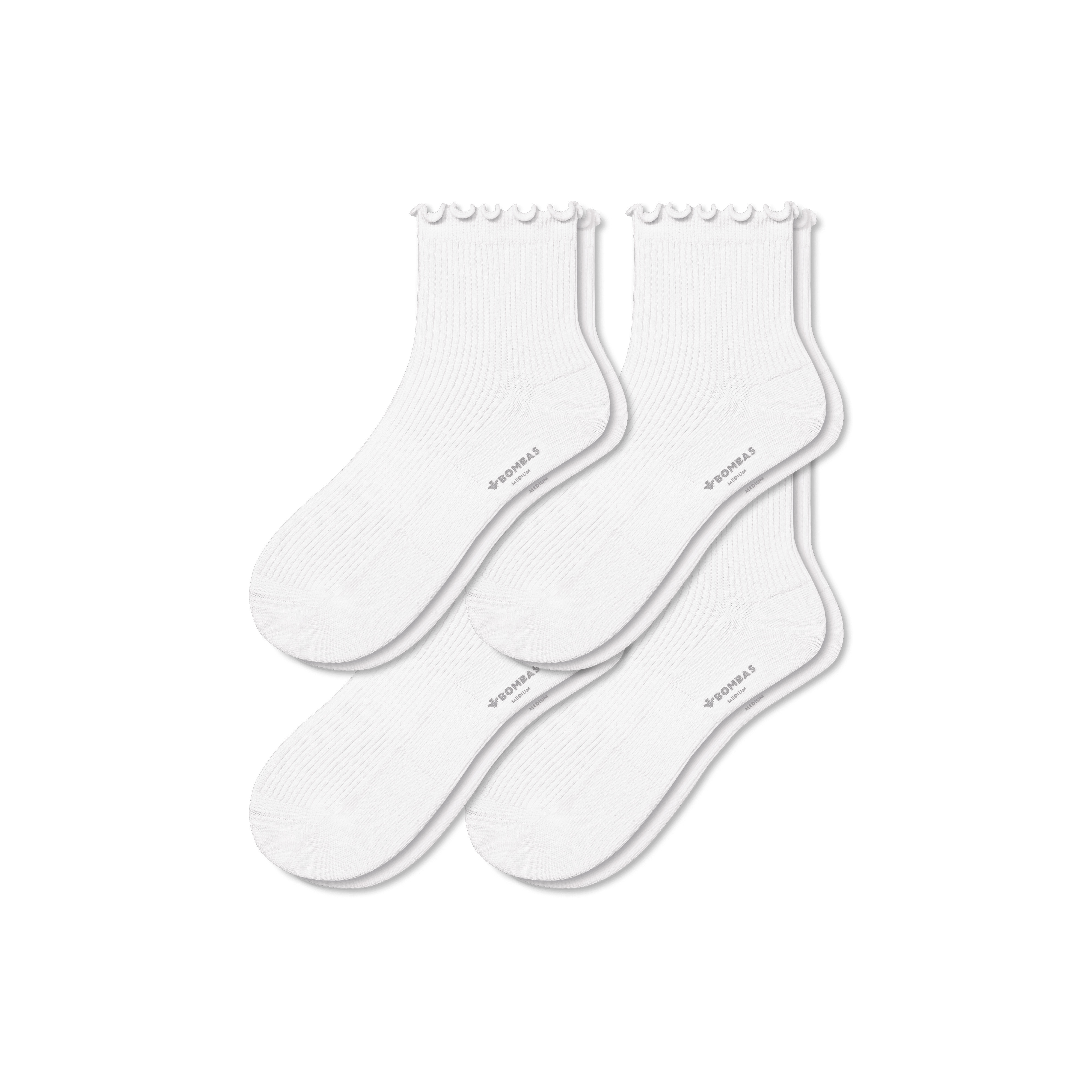 Women's Ruffle Rib Quarter Sock 4-Pack - White - Small - Cotton Blend - Bombas