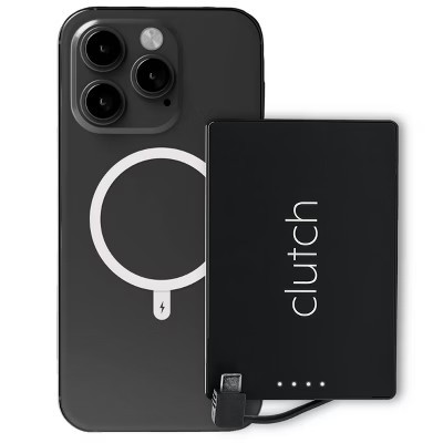 Clutch Pro USB-C 5000mAh Ultra Thin Magnetic Portable Charger with Built-In Charging Cable - Black