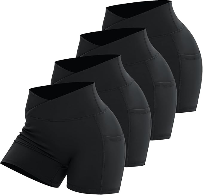 Workout Shorts for Women 2 Pcs Pack Cross Waist Active Gym Spandex Stretchy Yoga Compression with...