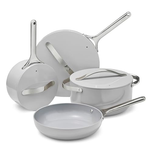 Caraway Non-stick Ceramic Cookware Set (12 Piece) Pots, Pans, Lids and Kitchen Storage - PFAS & PFOA Free - Oven Safe Pan Set & Compatible with All Stovetops - Gray
