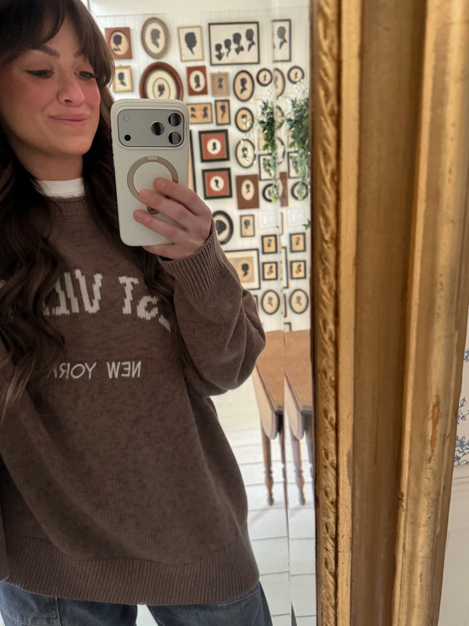 Cozy mom fit of the day - I am wearing the more affordable option. This one is printed and not stitched, but super cute! I have the high ended option in blue and love that shirt so much. I am wearing a large here. The shoes are not available, but I linked similar options that I have. The sweater is a vintage flag sweater.