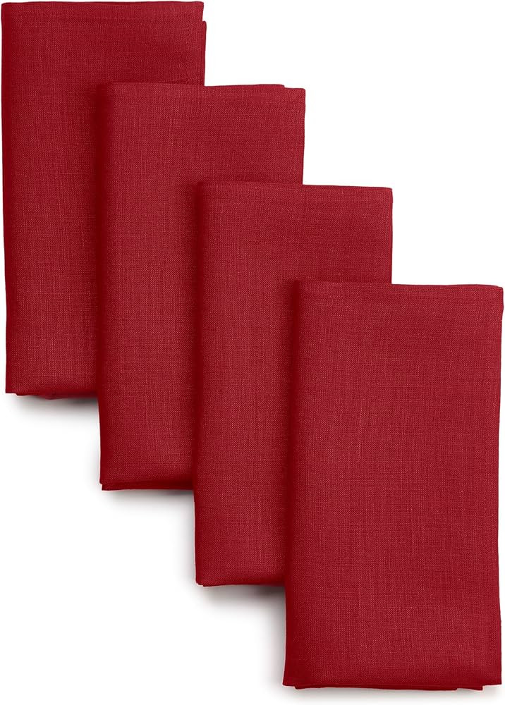 D'Moksha Homes Linen Dinner Napkins 18 x 18 Inch - 100% Pure Linen Red Napkins Set of 4 - Washabl...